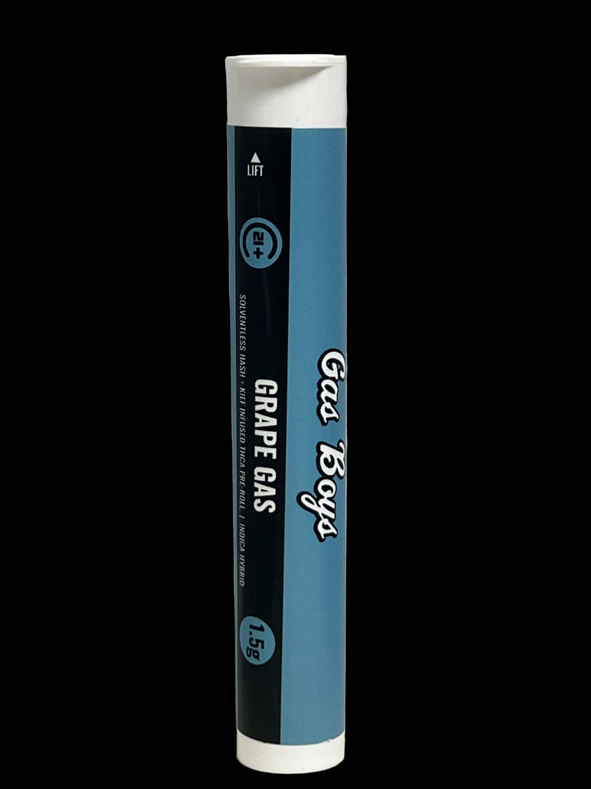 Join the Gas Boys party with our Solventless Hash + Kief THCa Prerolls! Made with premium hemp flower and infused with hash and kief, these prerolls will give you a flavorful and uplifting smoking experience. Try our strains like purple haze, sour diesel, grape gas, lemon cherry runtz, Pluto, and blizzard berry. Each preroll is 1.5 grams. Let's blaze!