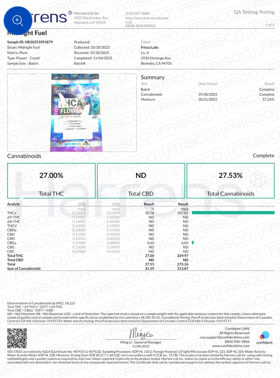 Midnight Fuel is where premium meets personality. This indica-dominant hybrid delivers a powerhouse 27%-28% total cannabinoids with a flavor journey that kicks off with diesel and earthy gas, finishing with surprising black cherry sweetness. The aroma? Deep, gassy, and complex—think peppered spice dancing with faint cocoa notes. Visually stunning dark emerald buds showcase deep purple accents and thick trichome coverage that catches the light beautifully. Hand-trimmed and slow-cured indoors to preserve every terpene, this Jet Fuel x Geo Cookies cross is crafted for connoisseurs who demand quality. Buckle up for a smooth, flavorful ride.